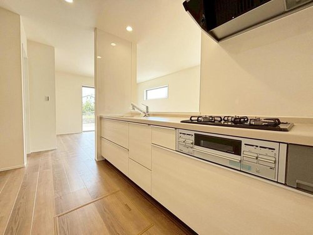 大型スライド収納付きで、すっきり片付けやすいキッチンです。