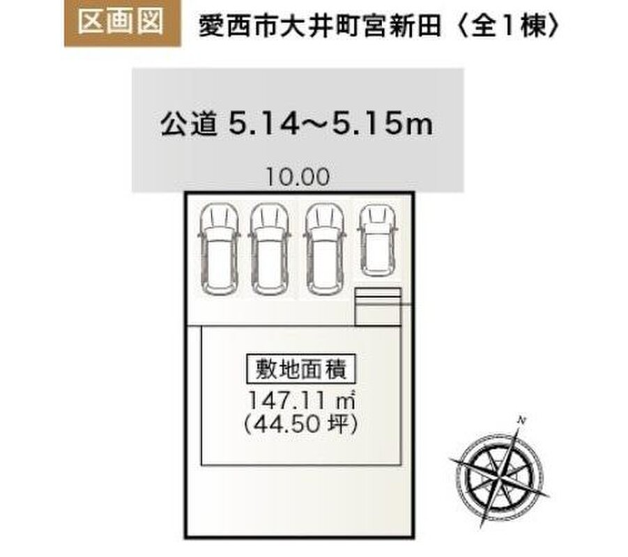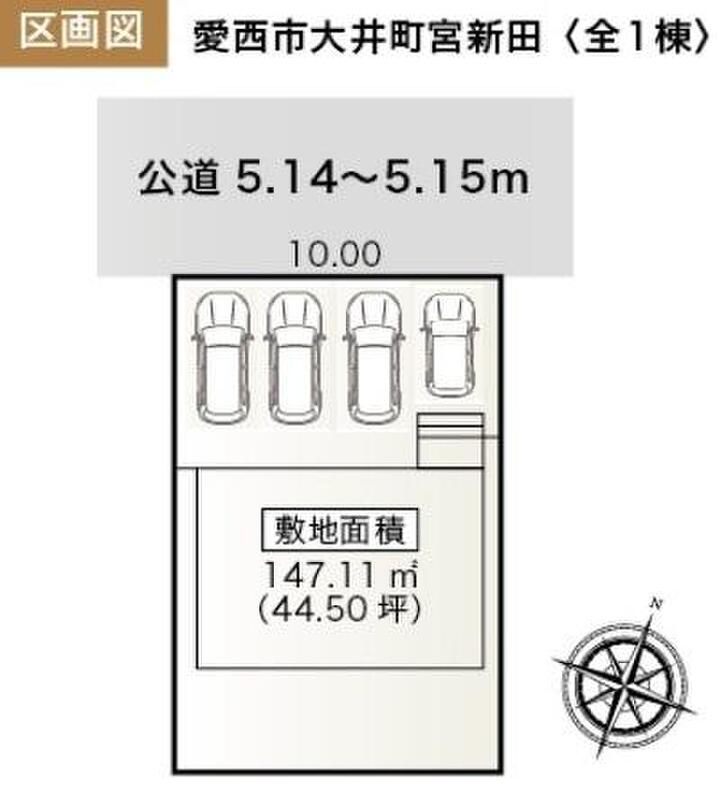 | 駐車場 | 4台 | 道路の幅員 | 道路幅:5.1m、アスファルト舗装、北西側 約5.1m 公道接道 |