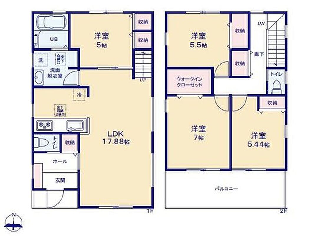 | 間取り | 4LDK・4LDK+S(納戸) | 建物構造 | 木造スレート葺又はアスファルトシングル葺、ガルバリウム鋼板横葺、カラー鉄板横葺2階建 |