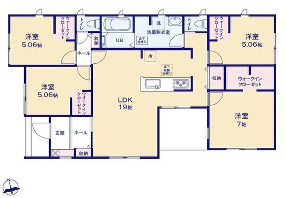 | 間取り | 4LDK | 建物構造 | 木造在来軸組工法1・2階建(910モジュール) |