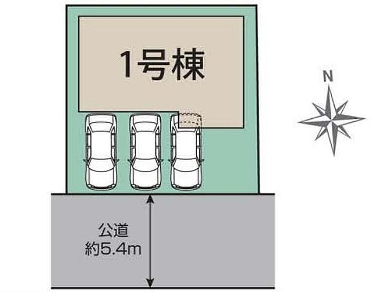 | 駐車場 | 3台 | 道路の幅員 | 道路幅:5.4m、アスファルト舗装、南側 約5.4m 公道接道 |