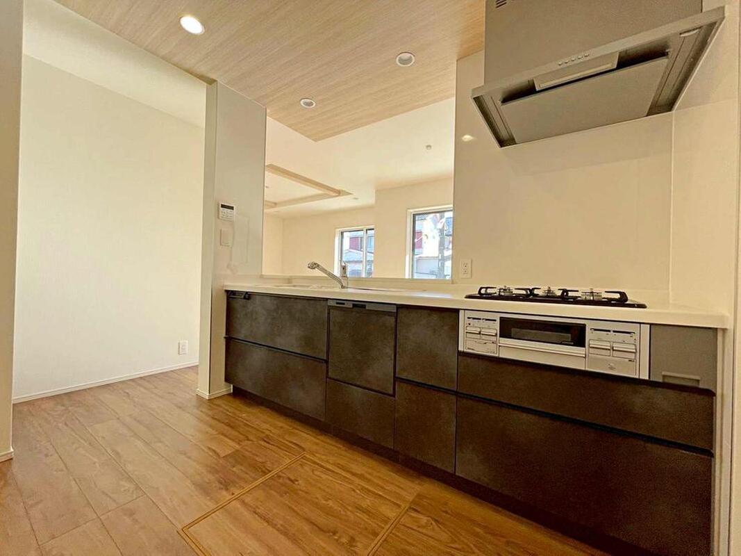 食器洗乾燥機付きで家族の食器もピカピカ。後片付けもラクラクこなせて、日々の生活には欠かせない便利設備。環境にもママの手にも優しいのがうれしいですね。