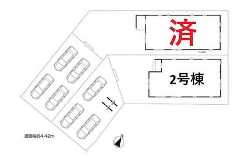 | 駐車場 | 3台 ~ 4台(1号棟4台・2号棟3台) | 道路の幅員 | 道路幅:4.4m、アスファルト舗装、南側 約4.42m 公道接道 |
