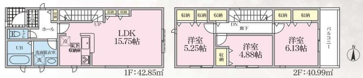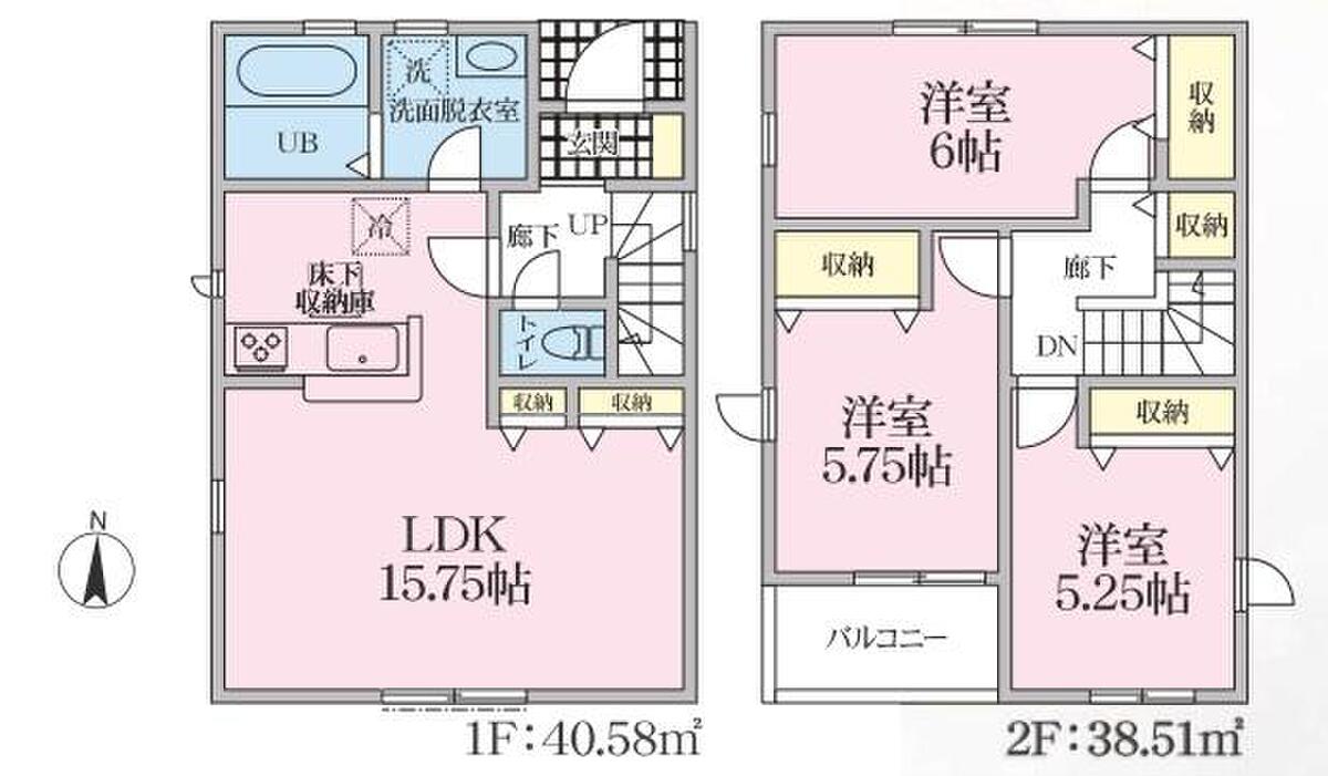 | 建物面積 | 79.09m2・83.84m2(23.92坪・25.36坪) | 土地面積 | 113.96m2~144.5m2(34.47坪~43.71坪) |