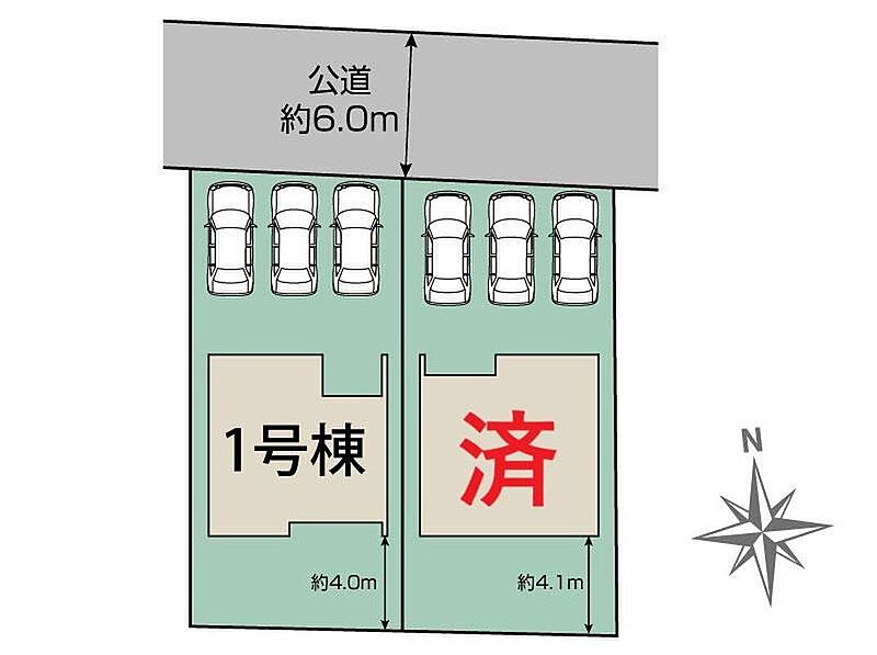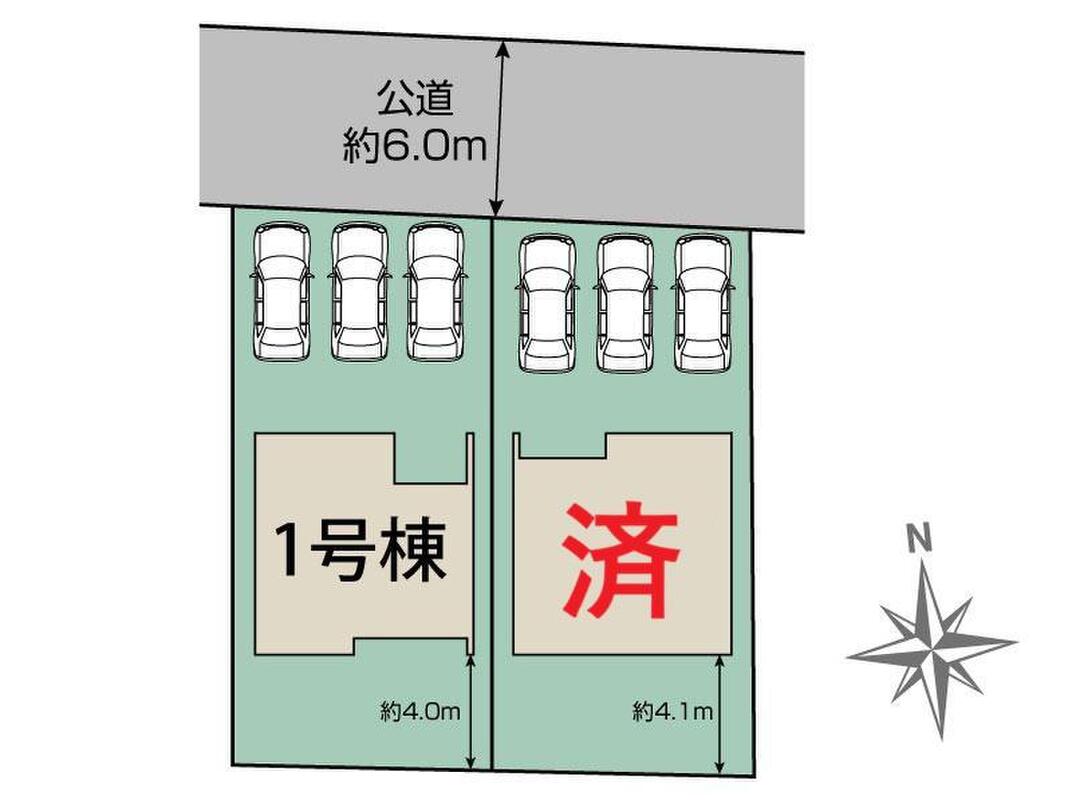 | 駐車場 | 3台 | 道路の幅員 | 道路幅:6m、アスファルト舗装、北側 約6.0m 公道接道 |