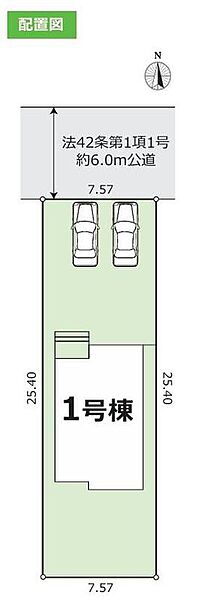 | 駐車場 | 2台 | 道路の幅員 | 道路幅:6m、アスファルト舗装、北側 約6.0m 公道接道 |