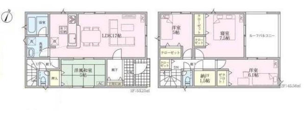 | 建物面積 | 95.57m2~98.81m2(28.90坪~29.88坪) | 土地面積 | 136.15m2~176.93m2(41.18坪~53.52坪) |
