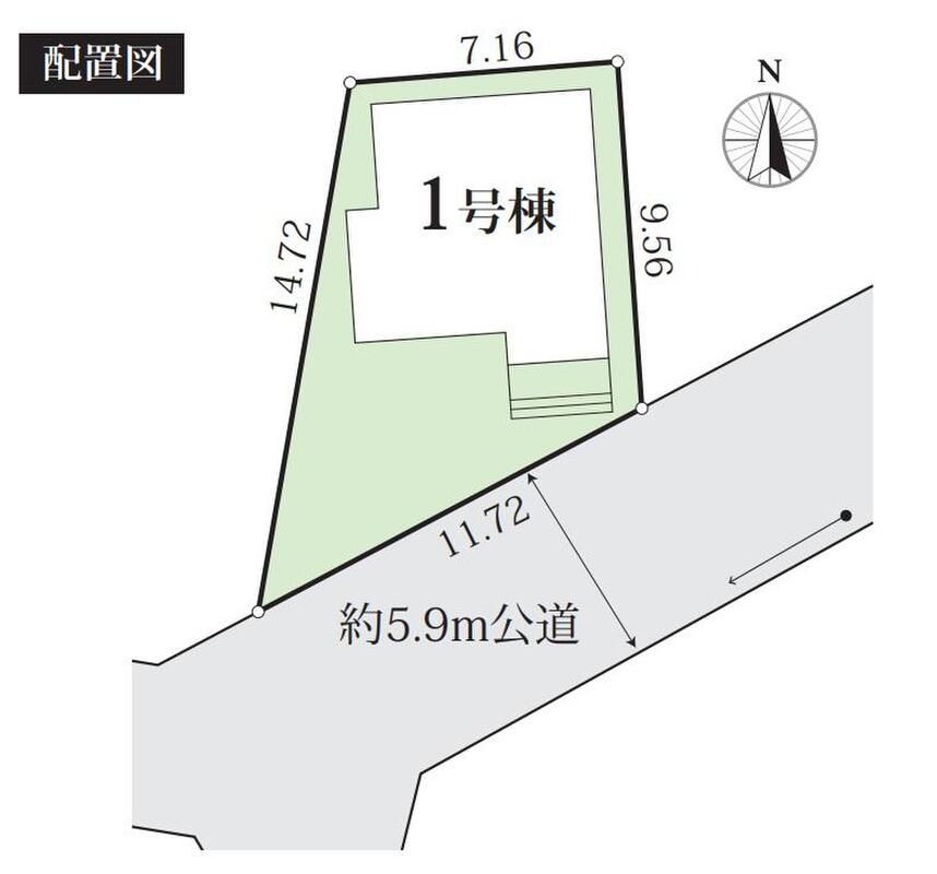 | 駐車場 | 1台(道路幅:5.9m、アスファルト舗装、南側 約5.9m 公道接道) | 道路の幅員 | - |