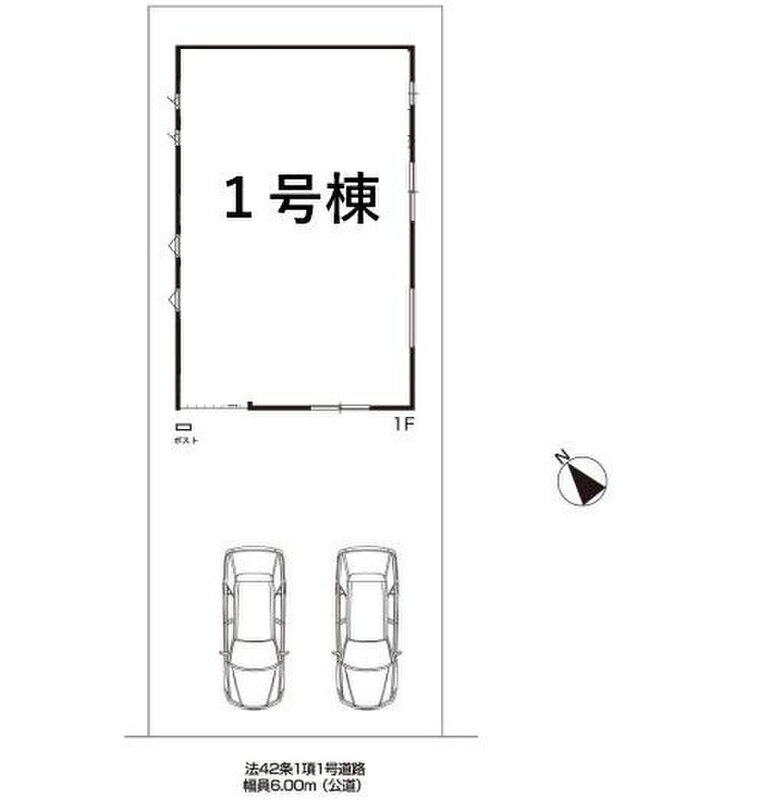 | 駐車場 | 2台 | 道路の幅員 | 道路幅:6m、アスファルト舗装、南西側 約6.0m 公道接道 |