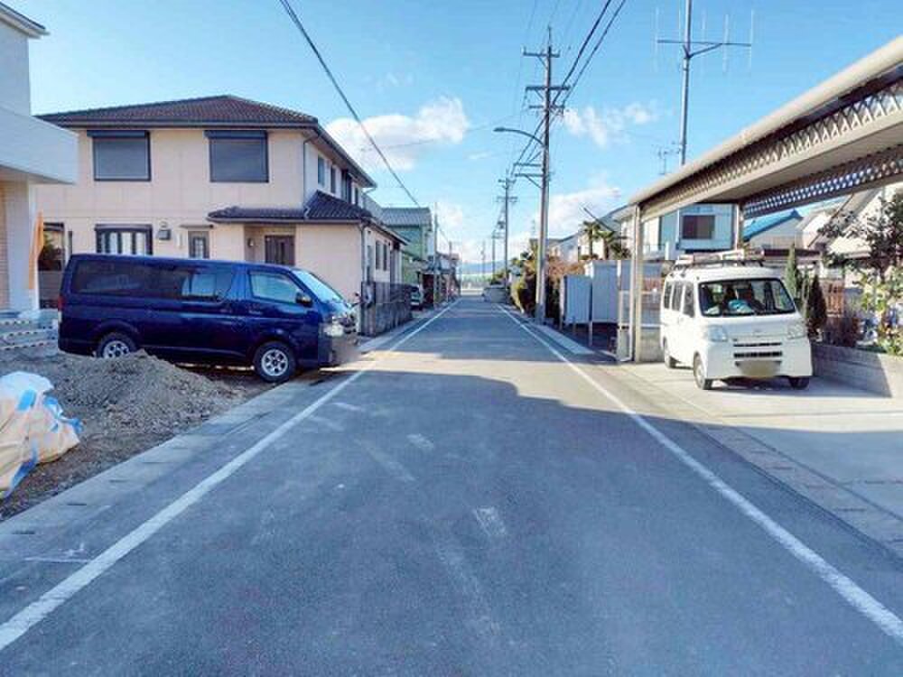 | 駐車場 | 4台 | 道路の幅員 | 道路幅:2.7m・5.9m、アスファルト舗装、北側 約5.9m公道、西側 約2.7m認定外道路 |