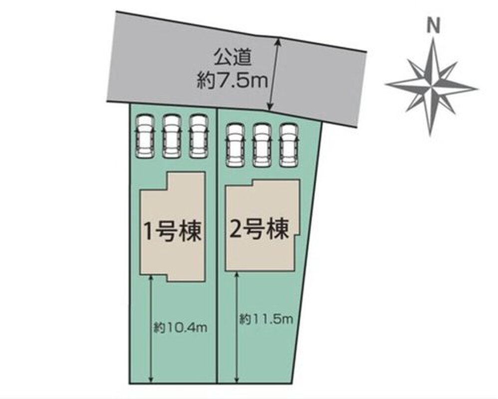 | 駐車場 | 3台 | 道路の幅員 | 道路幅:7.5m、アスファルト舗装、北側 約7.5m 公道接道 |