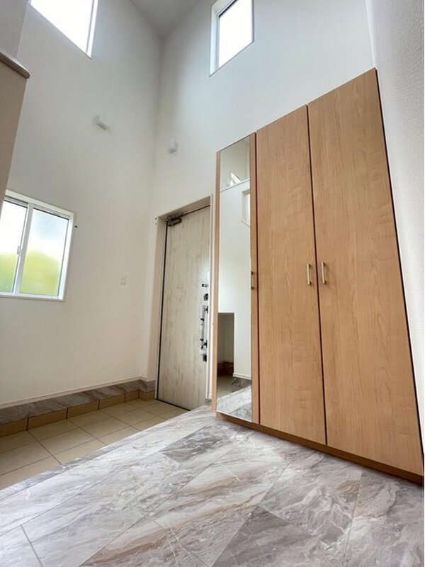 ○開放感溢れる吹抜けの明るくて清潔感溢れる玄関。便利な姿見鏡&下駄箱収納付きです♪