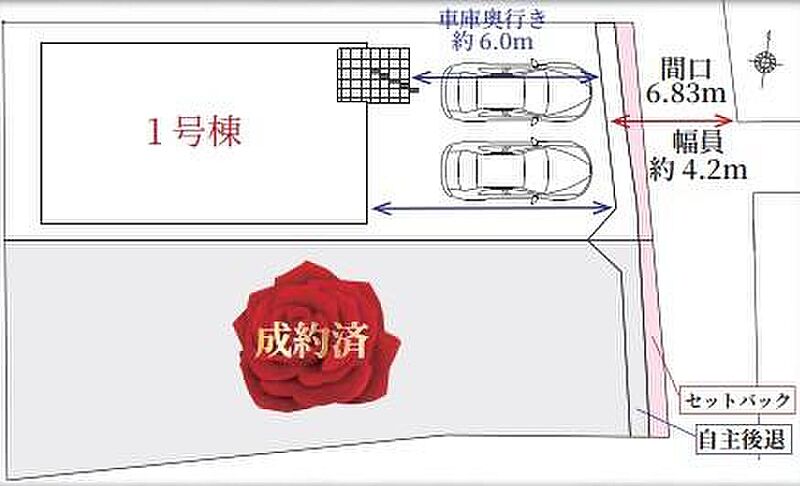 | 駐車場 | 2台 | 道路の幅員 | 道路幅:2.7m~3.2m、アスファルト舗装、東側 約2.7m~約3.2m 公道接道 |