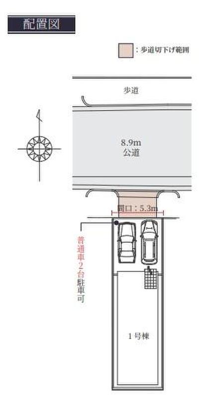 | 駐車場 | 2台(並列駐車) | 道路の幅員 | 道路幅:14.9m、アスファルト舗装、北側 約14.9m 公道接道 |