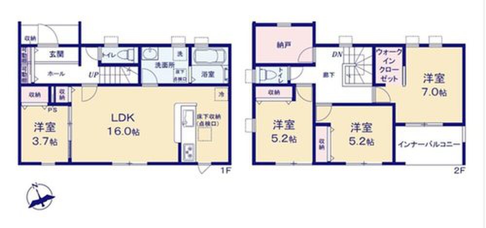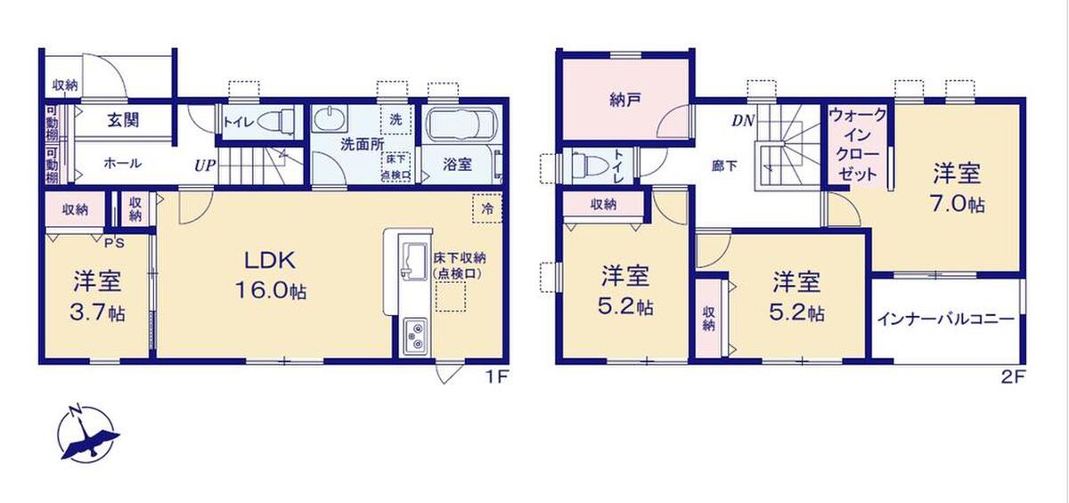 | 間取り | 4LDK+S(納戸) | 建物構造 | 木造在来軸組工法2階建(910モジュール) |
