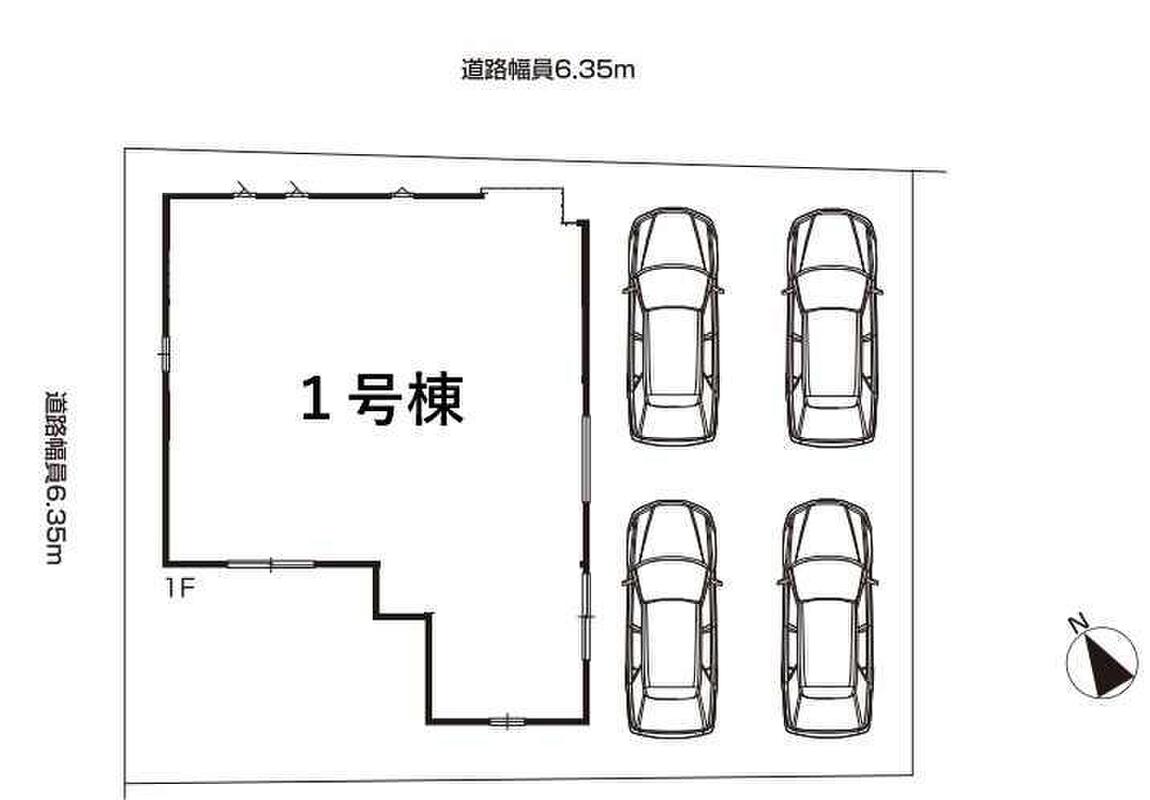 | 駐車場 | 4台 | 道路の幅員 | 道路幅:6.3m、アスファルト舗装、北東側 約6.3m、北西側 約6.3m 公道接道 |