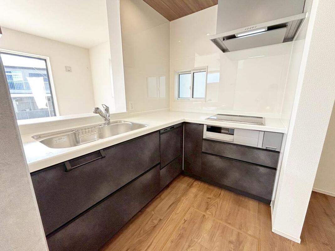 キッチンワークしながら大切な家族との会話を楽しめる、家族のコミュニケーションが生まれる対面式のオープンキッチン♪日々の生活には欠かせない便利な食器洗乾燥機付きです。