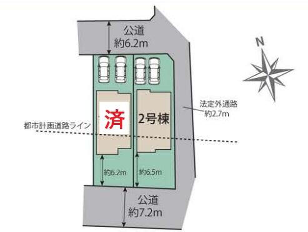 | 駐車場 | 2台 | 道路の幅員 | 道路幅:2.7m~7.2m、アスファルト舗装、他備考欄参照 |