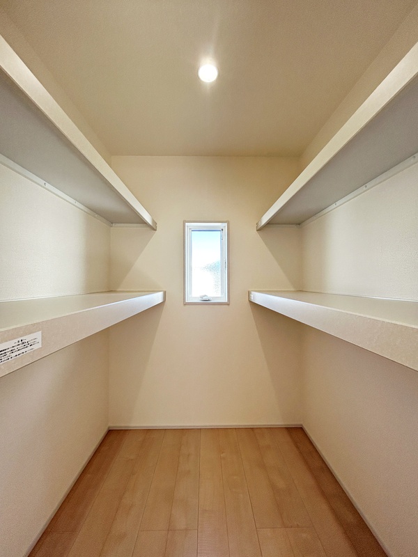 お子様との思い出もたっぷりしまえるウォークインクローゼット。衣類だけでなく、鞄などの小物からスーツケースやレジャー用品などの大きな物までたっぷり収納出来ます。