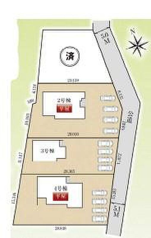 駐車場 4台 道路の幅員 道路幅:5m、アスファルト舗装、東側5m公道