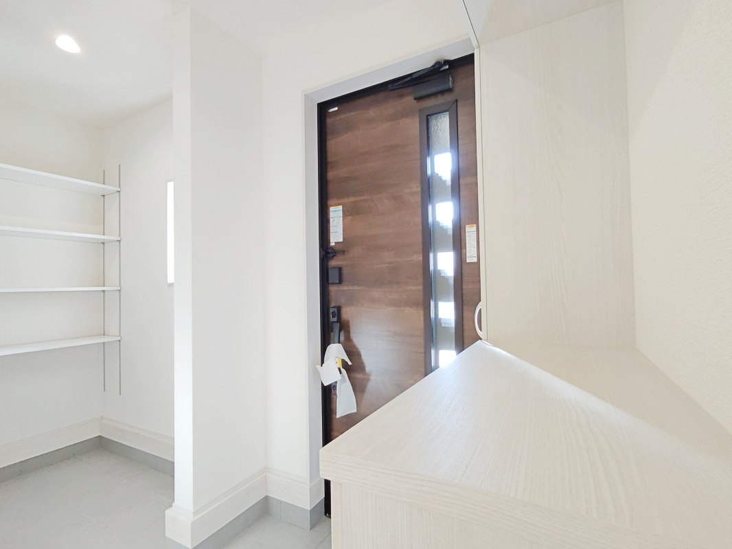 ロングブーツやトレッキング靴もすっぽり収まる玄関収納。靴はもちろんベビーカーやお子さんの遊び道具なども置いていただけます。