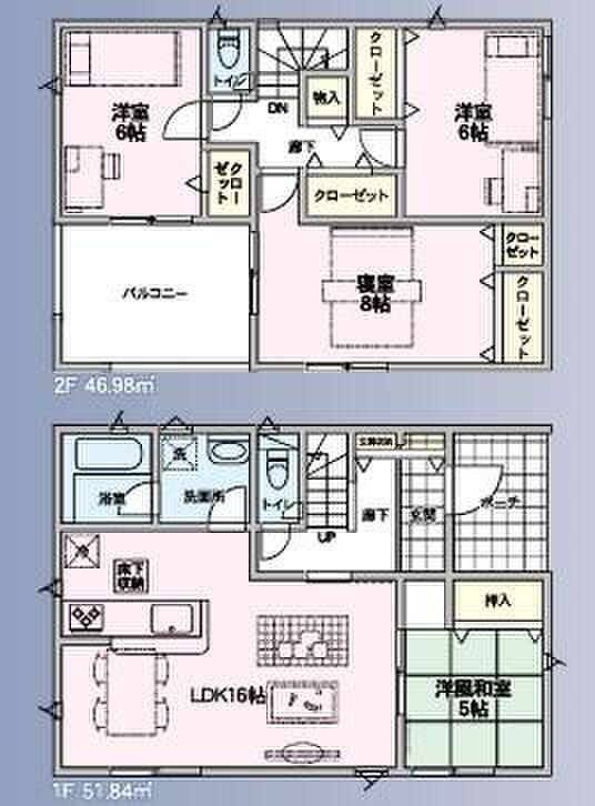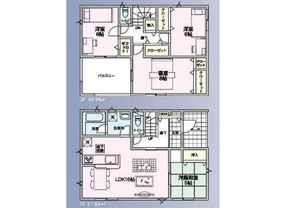 | 建物面積 | 98.81m2・98.82m2 | 土地面積 | 133.09m2・143.28m2 |