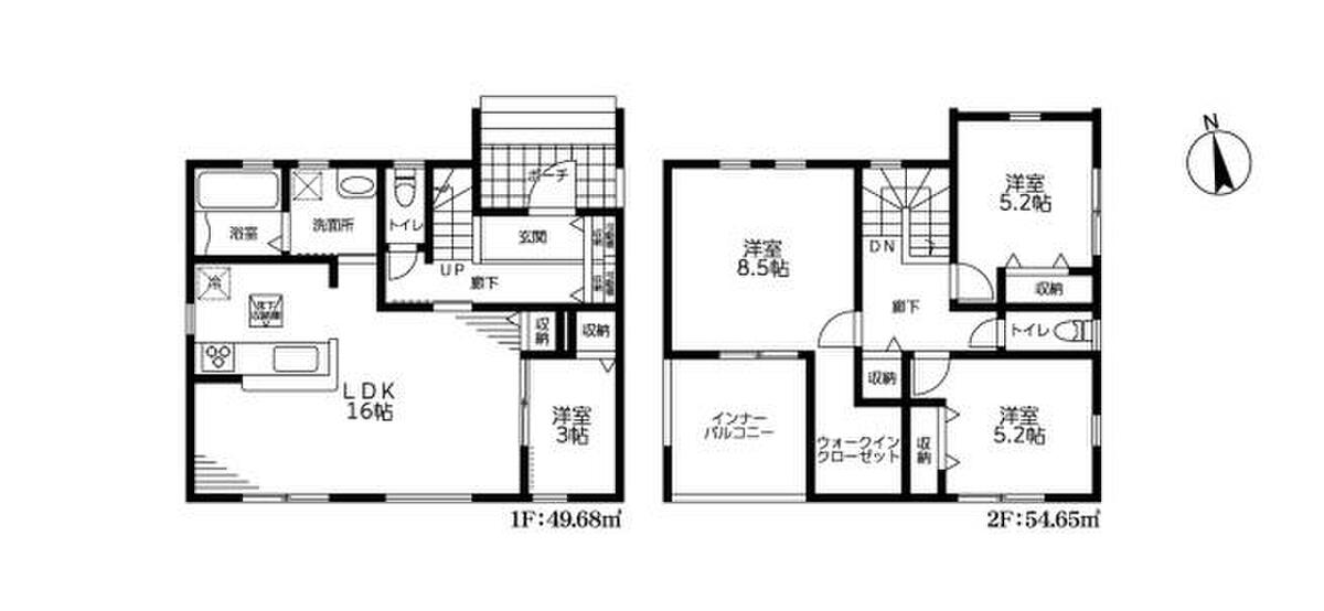 | 建物面積 | 104.33m2・108.47m2(31.55坪・32.81坪) | 土地面積 | 172.14m2・190.52m2(52.07坪・57.63坪) |
