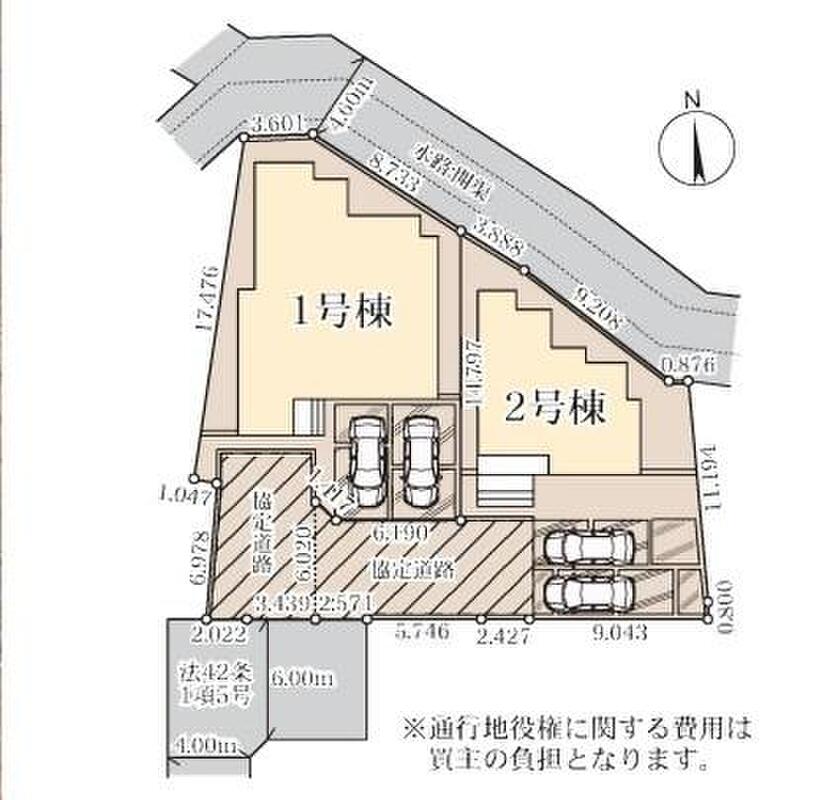 | 建物面積 | 102.68m2・105.99m2(31.06坪・32.06坪) | 土地面積 | 169.99m2・200.55m2(51.42坪・60.66坪) |