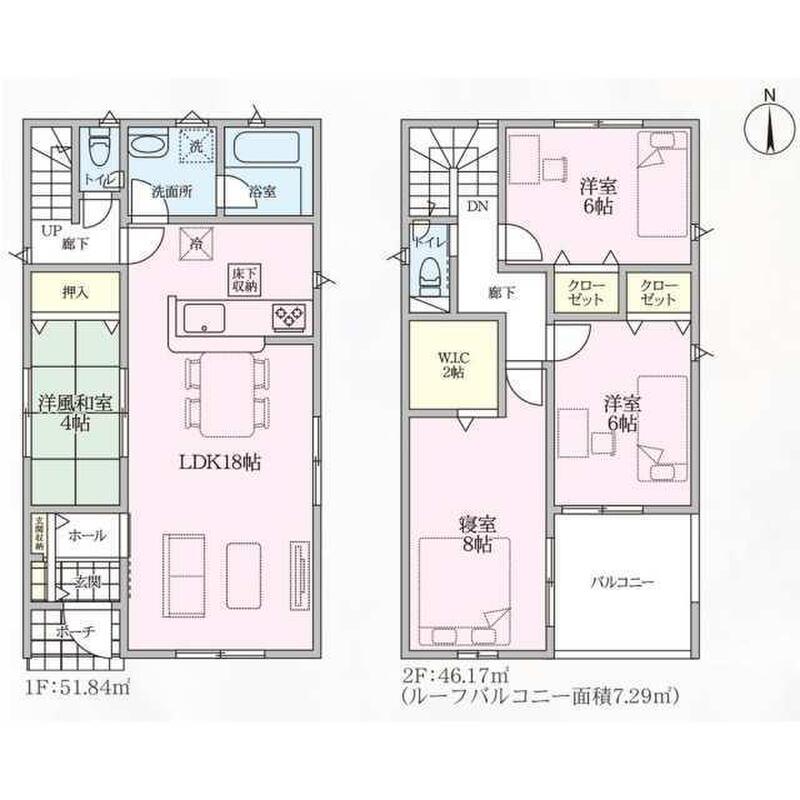 | 建物面積 | 95.58m2・98.01m2(28.91坪・29.64坪) | 土地面積 | 118.09m2・118.41m2(35.72坪・35.81坪) |