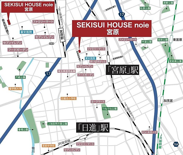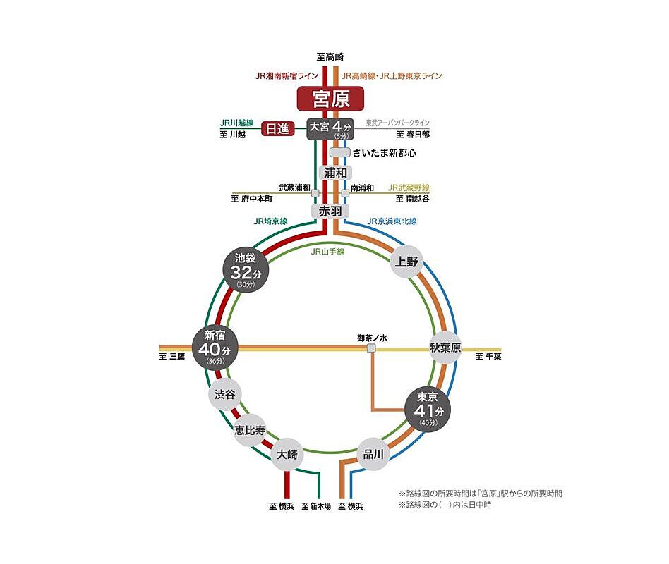 - JR高崎線「宮原」駅 徒歩7分~7分JR川越線「日進」駅 徒歩16分~17分