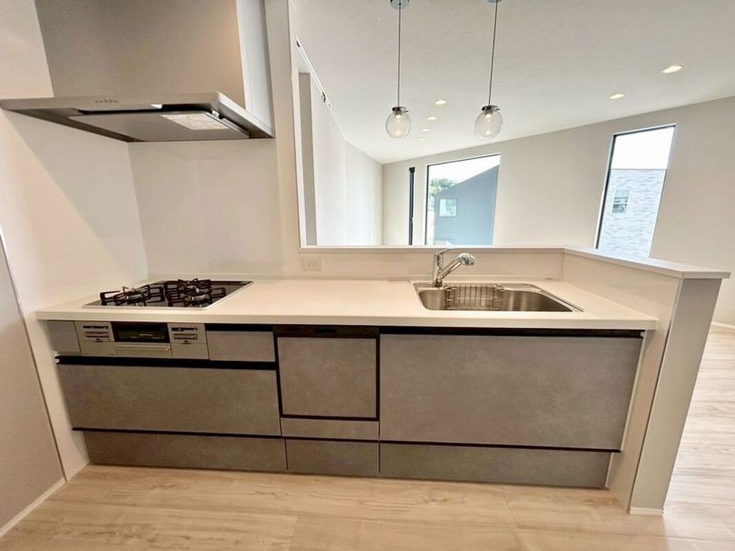 LDKには南西側に窓を設け、光をたっぷり取り込み明るい空間を演出します。キッチンは家族の様子が見渡しやすいカウンター付きを採用。コミュニケーションを取りながら楽しく料理をすることができます!