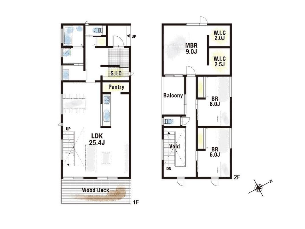 【ゆとりの住設計】25帖超の広々LDKとパントリー、S.I.Cを備えた快適設計。2階は主寝室に隣接してWIC2つと収納力も十分。家事動線と生活動線が整い、ゆとりある暮らしが叶います。