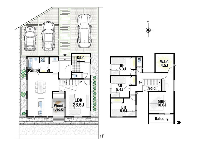 寝室は4部屋をご用意。家族それぞれのプライベート空間や趣味の場、ゲストルームとしても利用できます。主寝室には収納力たっぷりのW.I.Cも備えています。駐車場もゆとりのある広さを確保!