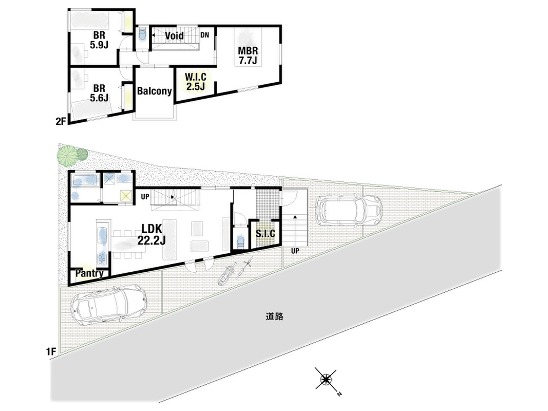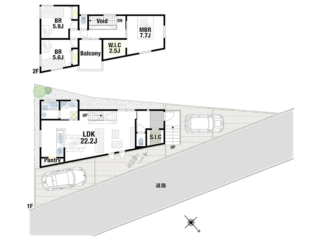 | 駐車場 | 2台 ~ 3台(2台(2号地)) | 道路の幅員 | 北側約4.9m |