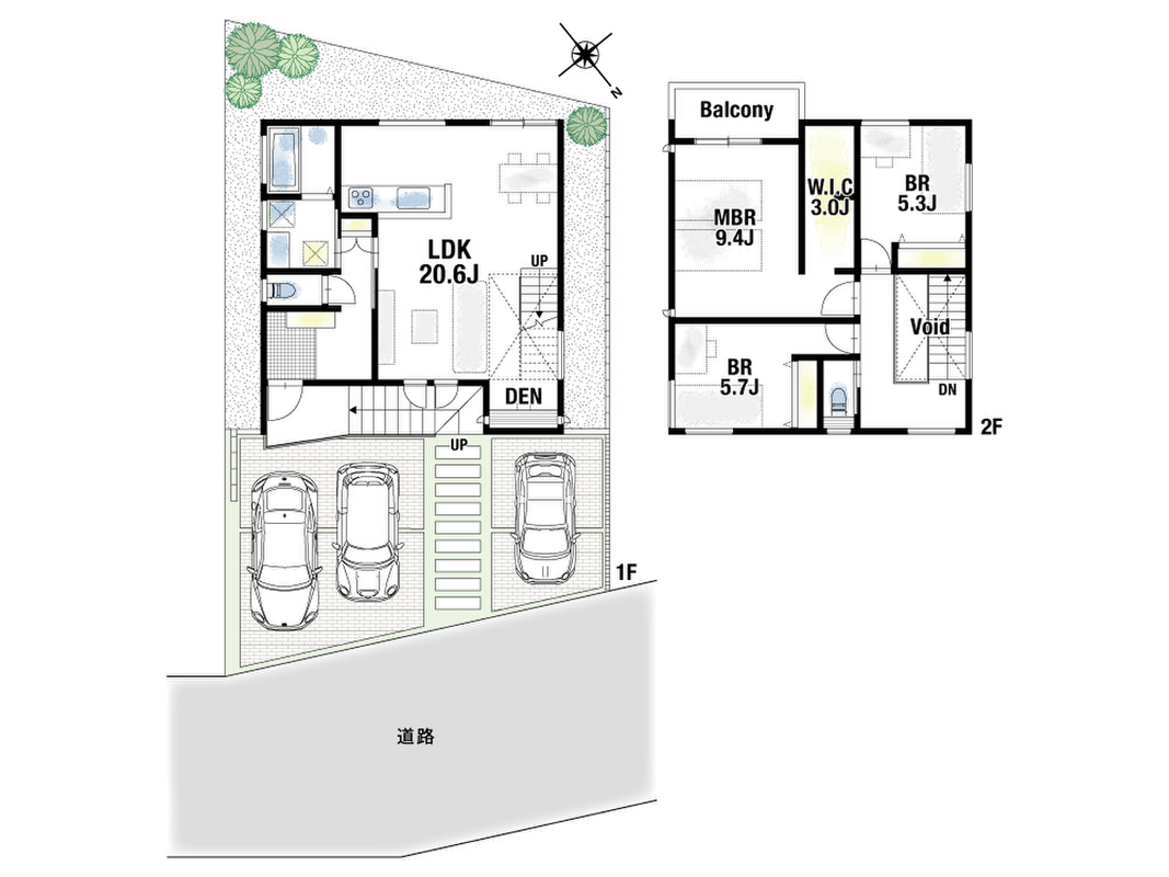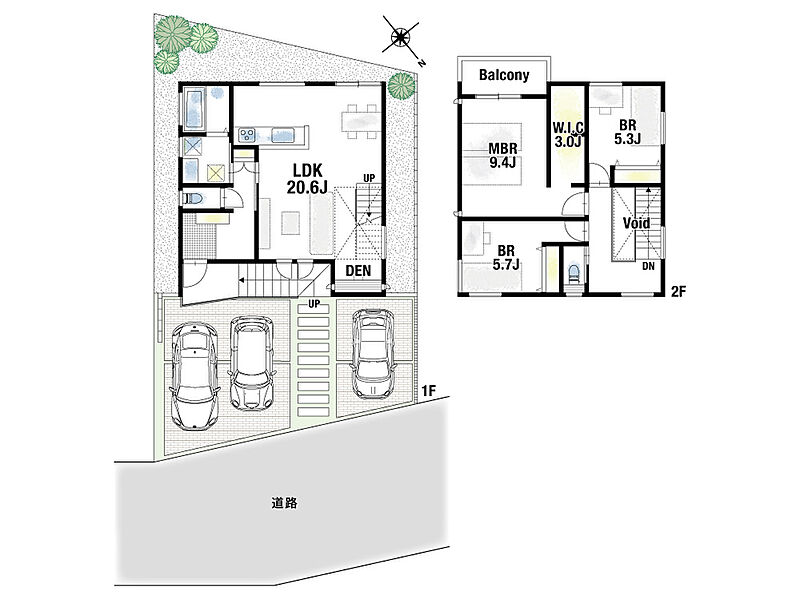 | 駐車場 | 1台 ~ 3台(3台(1号地)) | 道路の幅員 | 北側約4.9m |