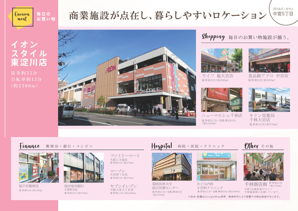 - Osaka Metro今里筋線「太子橋今市」駅 徒歩15分Osaka Metro谷町線「千林大宮」駅 徒歩16分