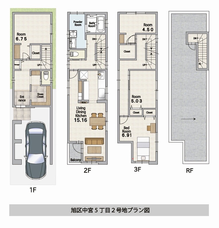 | 建物面積 | 118.63m2(1号地) | 土地面積 | 61.95m2 |