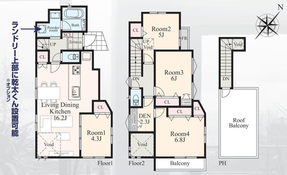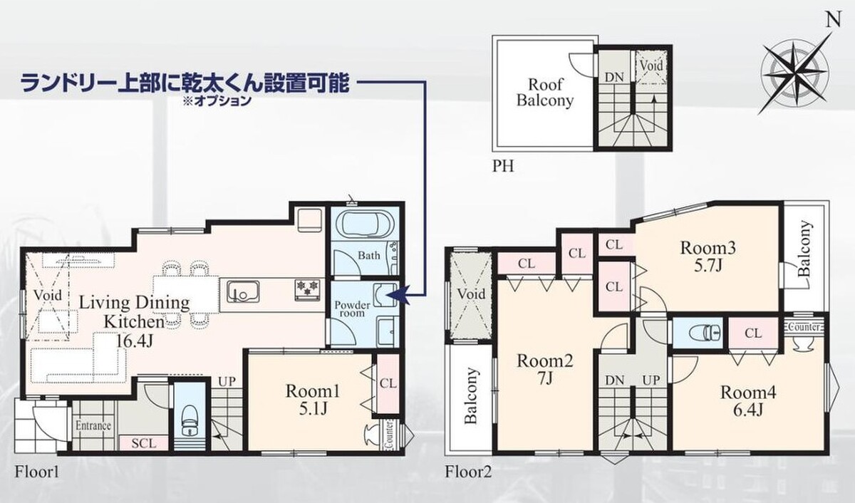 全棟4LDK どこまでも見渡せるルーフバルコニー付き