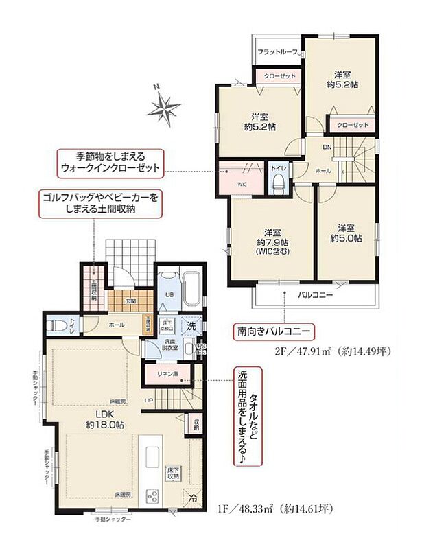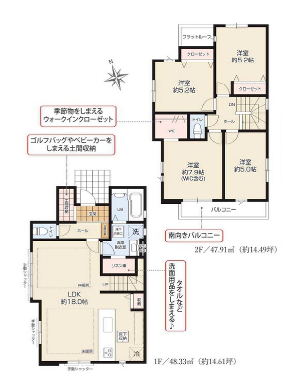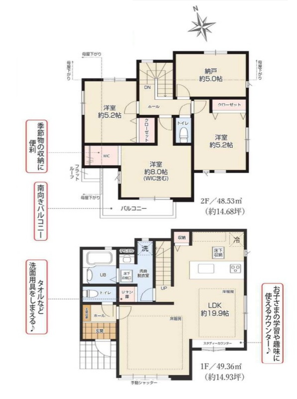 全棟南道路に面した明るい邸宅 複数駐車可 収納スペース多数