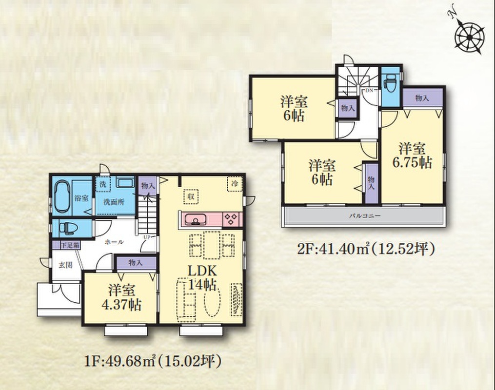 | 建物面積 | 91.08m2~91.60m2 | 土地面積 | 125.49m2~125.51m2 |