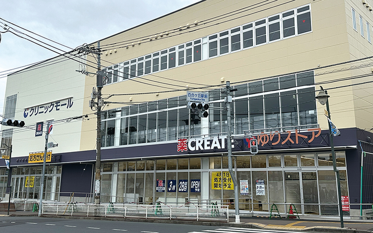 食品スーパー「ゆりストア」と一体化したドラッグストアで、医薬品...