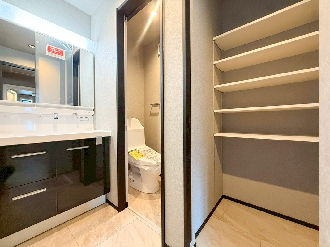 たっぷりの大型収納を設けたシャワー付き洗...