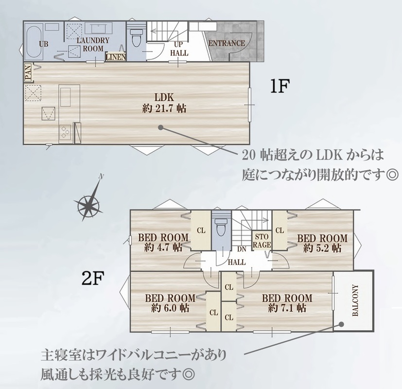 LDK21帖超の大空間!駐車並列2台可能なゆとり!
