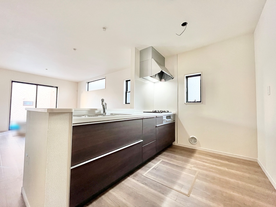 ガスコンロ前の壁には、熱に強く、サッと拭き取るだけで簡単に油汚れを落とすことができるキッチンパネルを採用しています。簡単な手入れでキレイが続くのはうれしいですね!