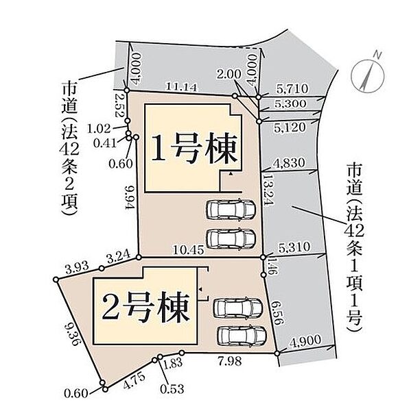 | 駐車場 | 2台 | 道路の幅員 | 道路幅:3.5m~4.9m、アスファルト舗装、東側4.9m公道、北側3.5m公道 |