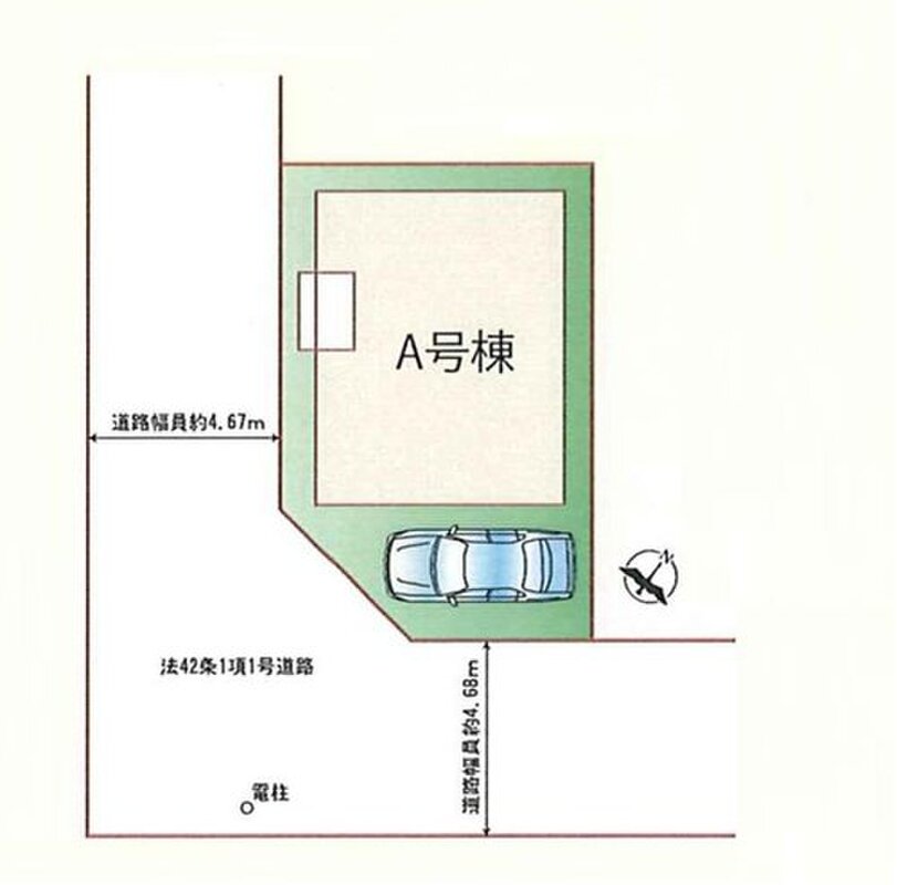 | 駐車場 | 1台 | 道路の幅員 | アスファルト舗装、南東公道約4.7m、南西公道約4.7m |