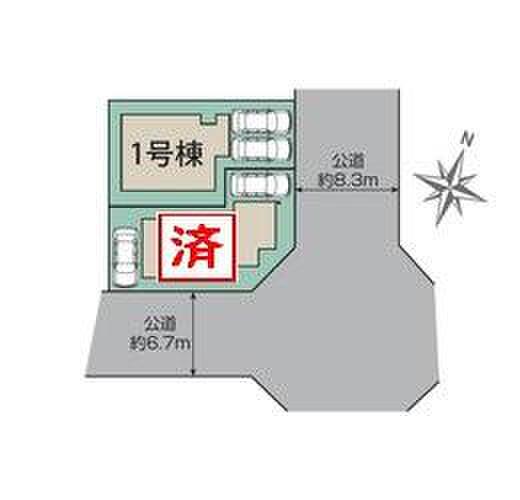 | 駐車場 | 2台 | 道路の幅員 | 道路幅:6.7m・8.3m、アスファルト舗装、東8.3m公道、南6.7m公道 |