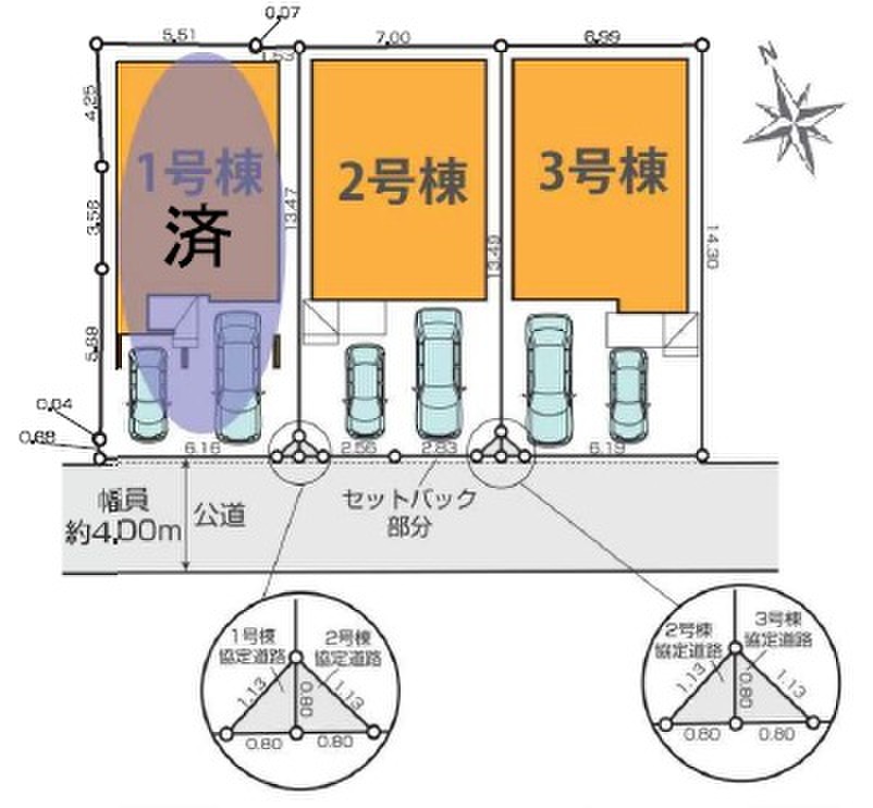 | 建物面積 | 97.12m2・98.15m2 | 土地面積 | 91.51m2・100.74m2 |