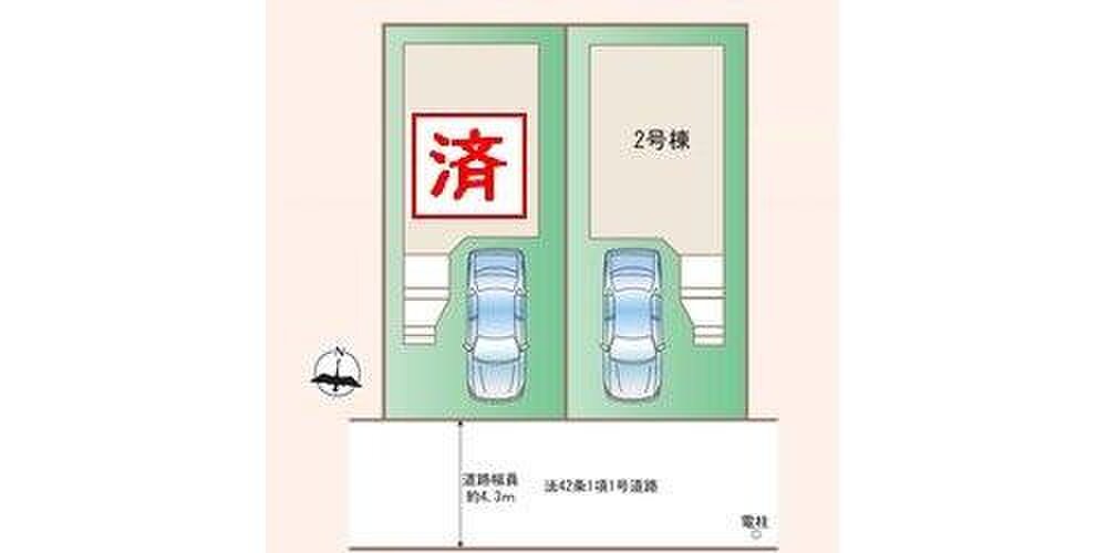 | 駐車場 | 1台 | 道路の幅員 | 道路幅:4.2m、アスファルト舗装、南側公道約4.2m |
