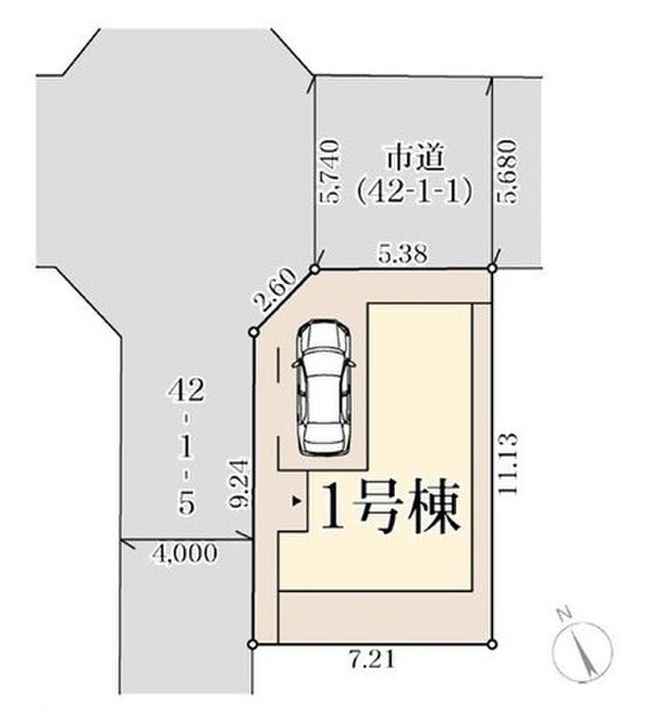 | 駐車場 | 1台 | 道路の幅員 | アスファルト舗装、北側5.68m 公道、西側4m位置指定道路 |